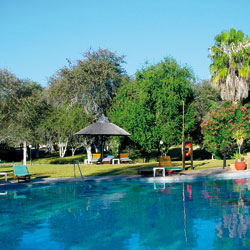 Mokuti Lodge liegt an der Ostgrenze vom Etosha-Nationalpark und bietet einzigartigen afrikanischen Charme verbunden mit Komfort auf internationalem Niveau. Fahrten in offenen Fahrzeugen zu den Wasserlöchern in der Etosha-Pfanne werden täglich am Vor- und Nachmittag angeboten. Jedes der Gästehäuschen mit Strohdach ist mit BAD /DU, Klimaanlage, Fernseher, Telefon, Kühlschrank und Föhn ausgestattet. Gäste können die Umgebung zu Fuß oder mit einem Mountainbike erkunden. Von besonderem Interesse dürften der Vogelbeobachtungsposten und der Reptilienpark sein, der einzige und größte dieser Art in Namibia.