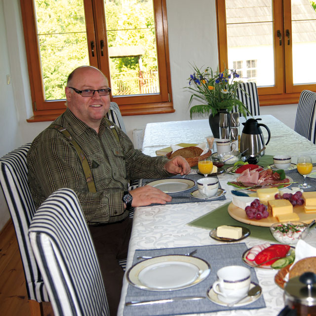 Wahlweise kann zwischen Halb- und Vollpension gewählt werden. Die Essenszeiten werden dem Jagdbetrieb angepasst. Für die Zubereitung der Mahlzeiten verwendet Ulla meist nur Erzeugnisse aus der heimischen Landwirtschaft und aus dem eigenen Garten. Das Wildbret stammt vom selbst erlegten Wild aus der Umgebung. Liebevoll zubereitet und schön angerichtet lassen sich die feinen Gerichte im Speisezimmer ausgiebig genießen. Ein feiner Rot- oder Weißwein, Bier und andere lebenswichtigen Wässerchen sind im Waldhaus Hubertus immer vorrätig!